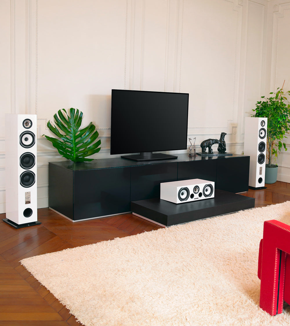 Der VOCE EZ-Center-Lautsprecher wurde speziell entwickelt, um das Gleichgewicht der Klangfarben in einer 5.1-Komposition aufrechtzuerhalten und die Kohärenz der Klangbühne zu verstärken.