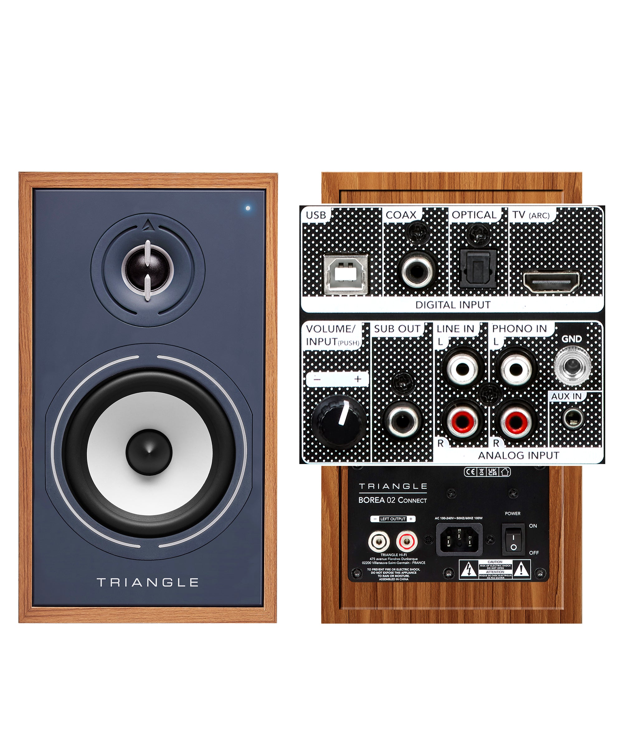 Der Class-D-Verstärker mit 2x50 Watt, der 13 cm große TRIANGLE- Treiber aus 100% natürlichem Zellstoff und der 25 mm Seidenkalotten-Hochtöner bieten einen linearen Frequenzgang, der perfekt kontrolliert wird.