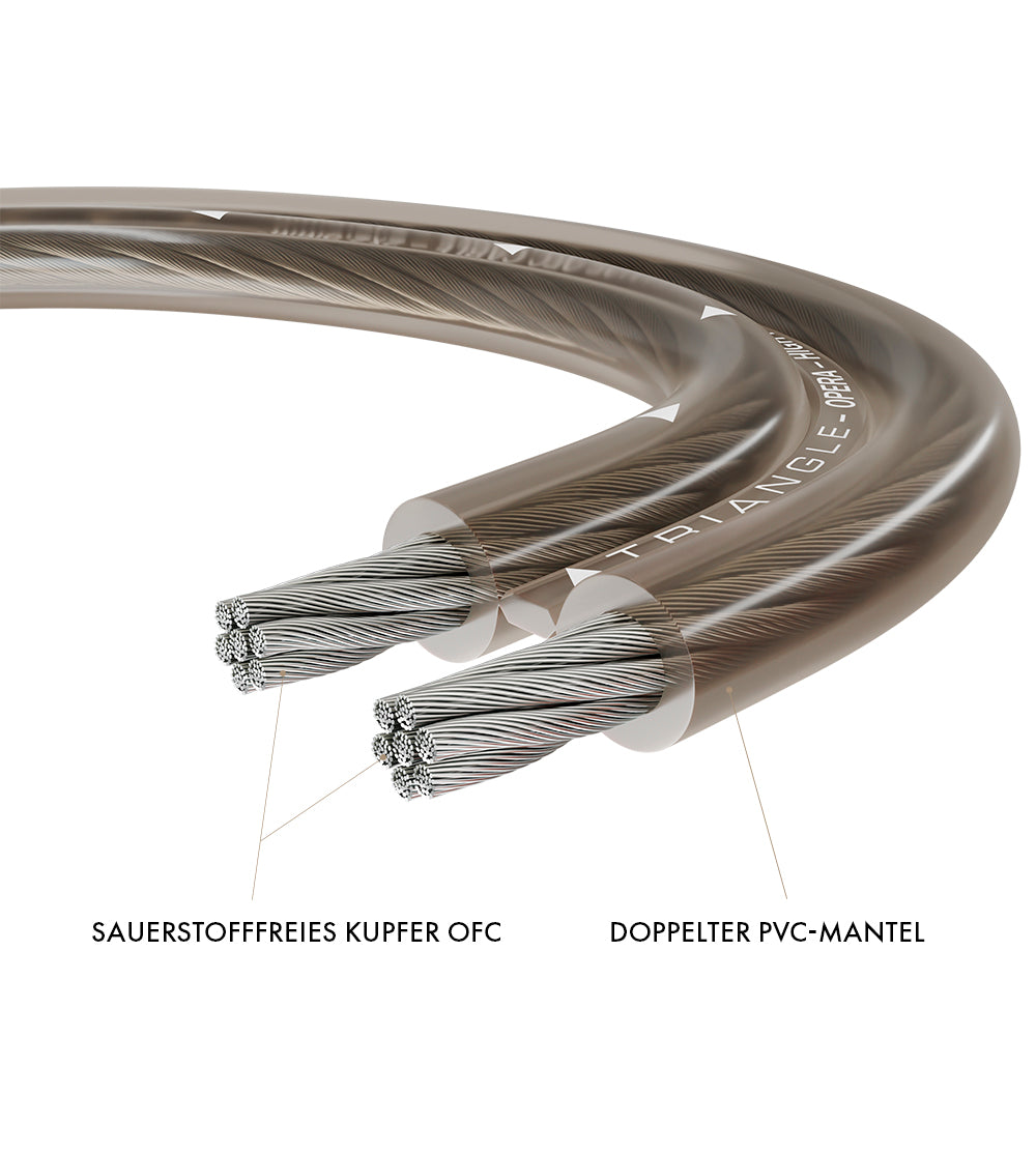 Der Leiter mit einem Gesamtquerschnitt von 2 x 2,5 mm² besteht aus sauerstofffreiem Kupfer (OFC) und ist mit einer dünnen Zinnschicht überzogen. Diese Behandlung begrenzt auf natürliche Weise die Oxidation des Metalls und gewährleistet gleichzeitig eine stabile Signalübertragung.