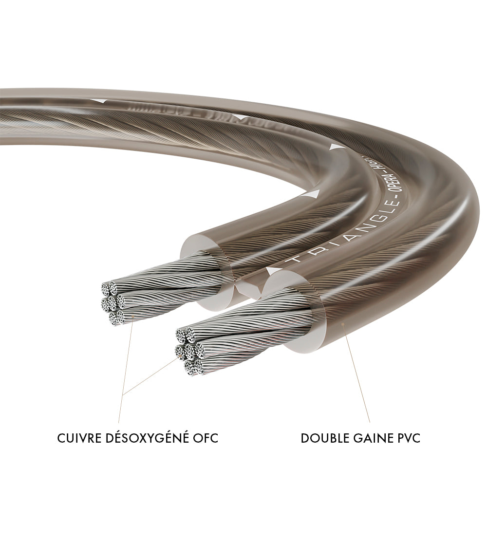 Doté d’une section totale de 2x2,5mm², le conducteur est constitué de cuivre désoxygéné OFC (Oxygen Free Copper), recouvert d’une fine couche d’étain. Ce traitement limite naturellement l’oxydation du métal, tout en assurant une transmission stable du signal.