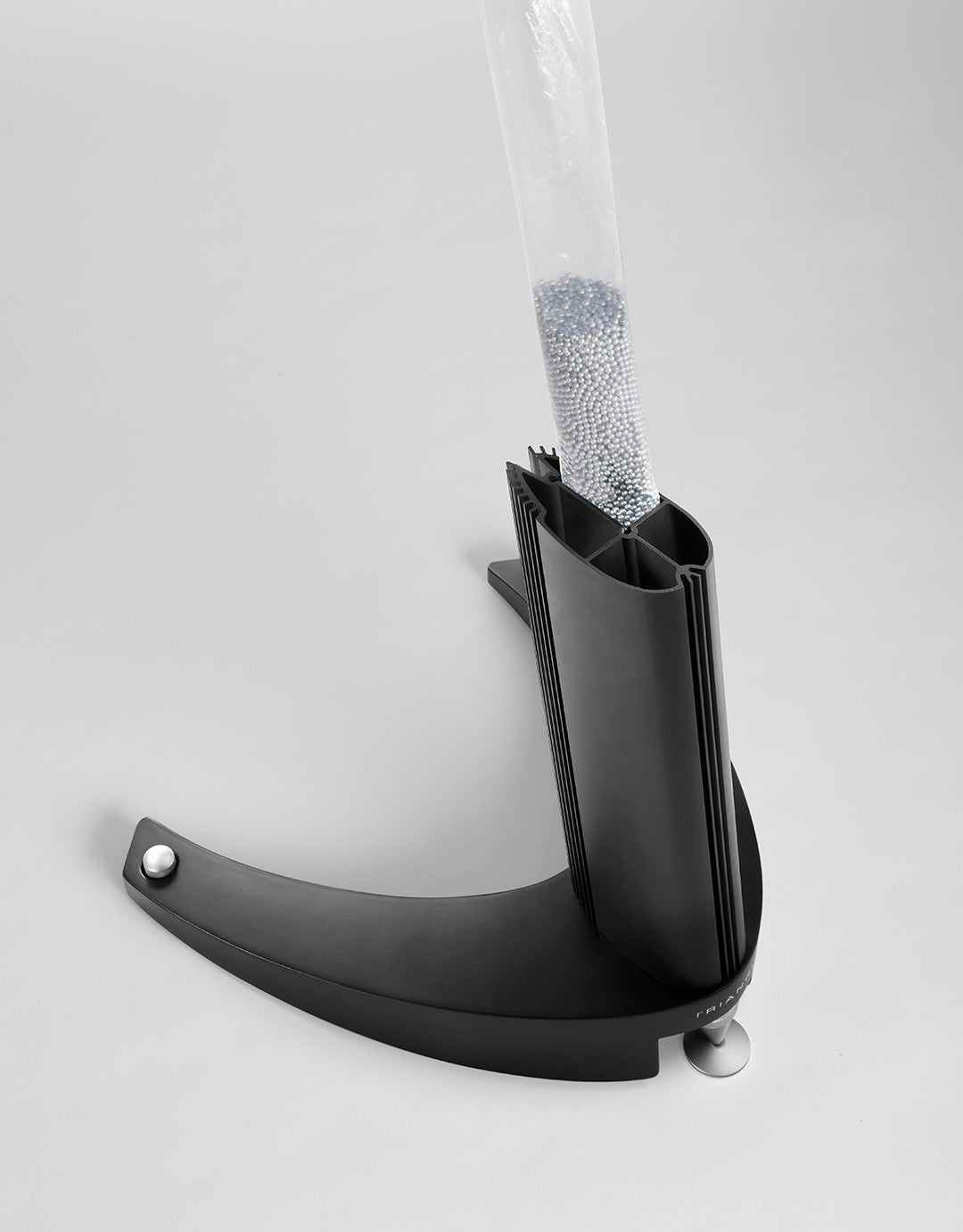 Afin d’obtenir un support d’enceinte parfaitement inerte TRIANGLE a travaillé sur une solution de lestage. Le tube constitué de micro-cylindres haute densité, permet la réception de billes de lestage réduisant efficacement les risques de résonance et vibrations générées par l’enceinte.