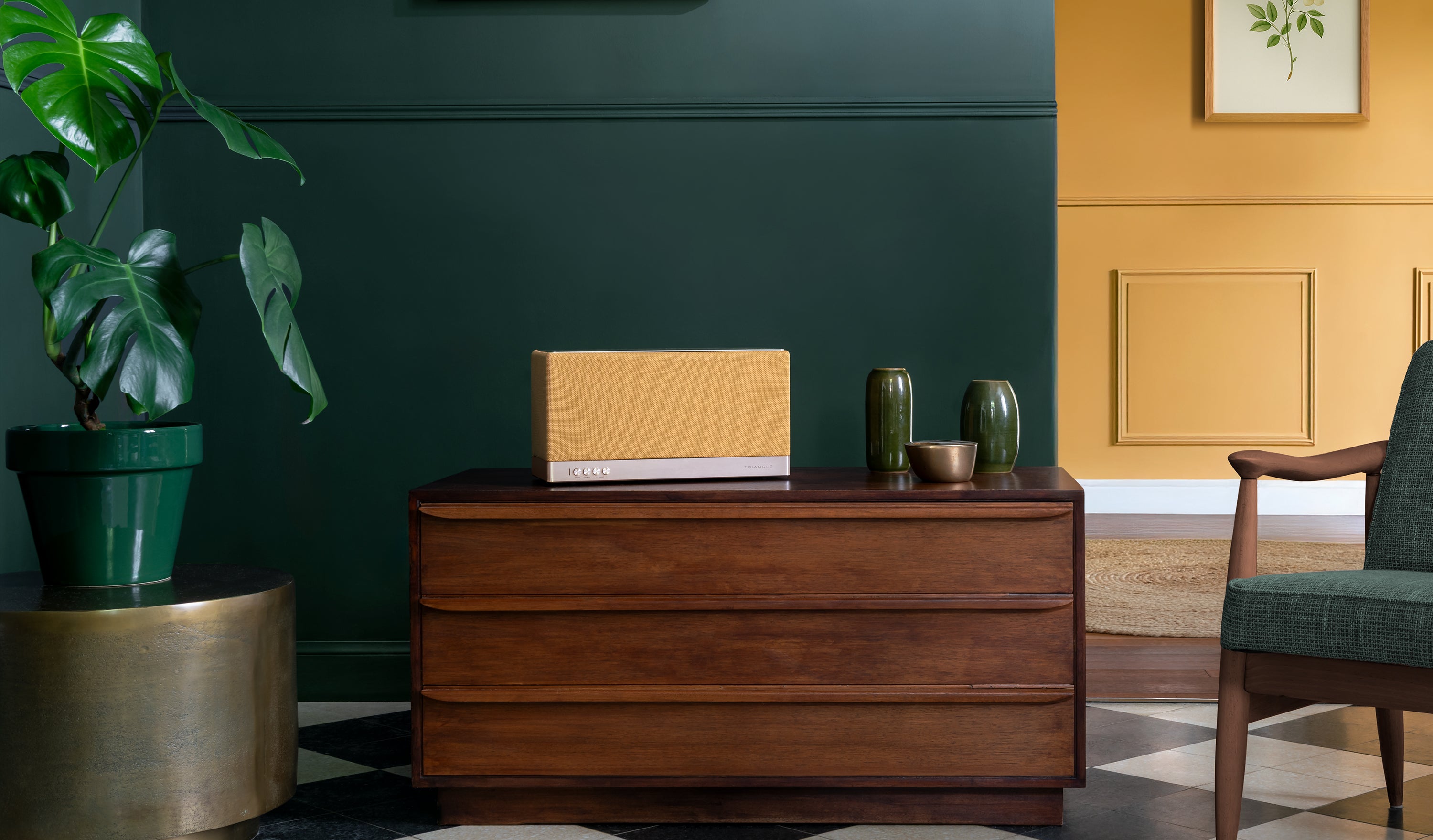 Intended to be used daily, the AIO speaker is draped in an elegant fabric from the Scandinavian brand Gabriel, which is well known around the world for developing exclusive fabrics.