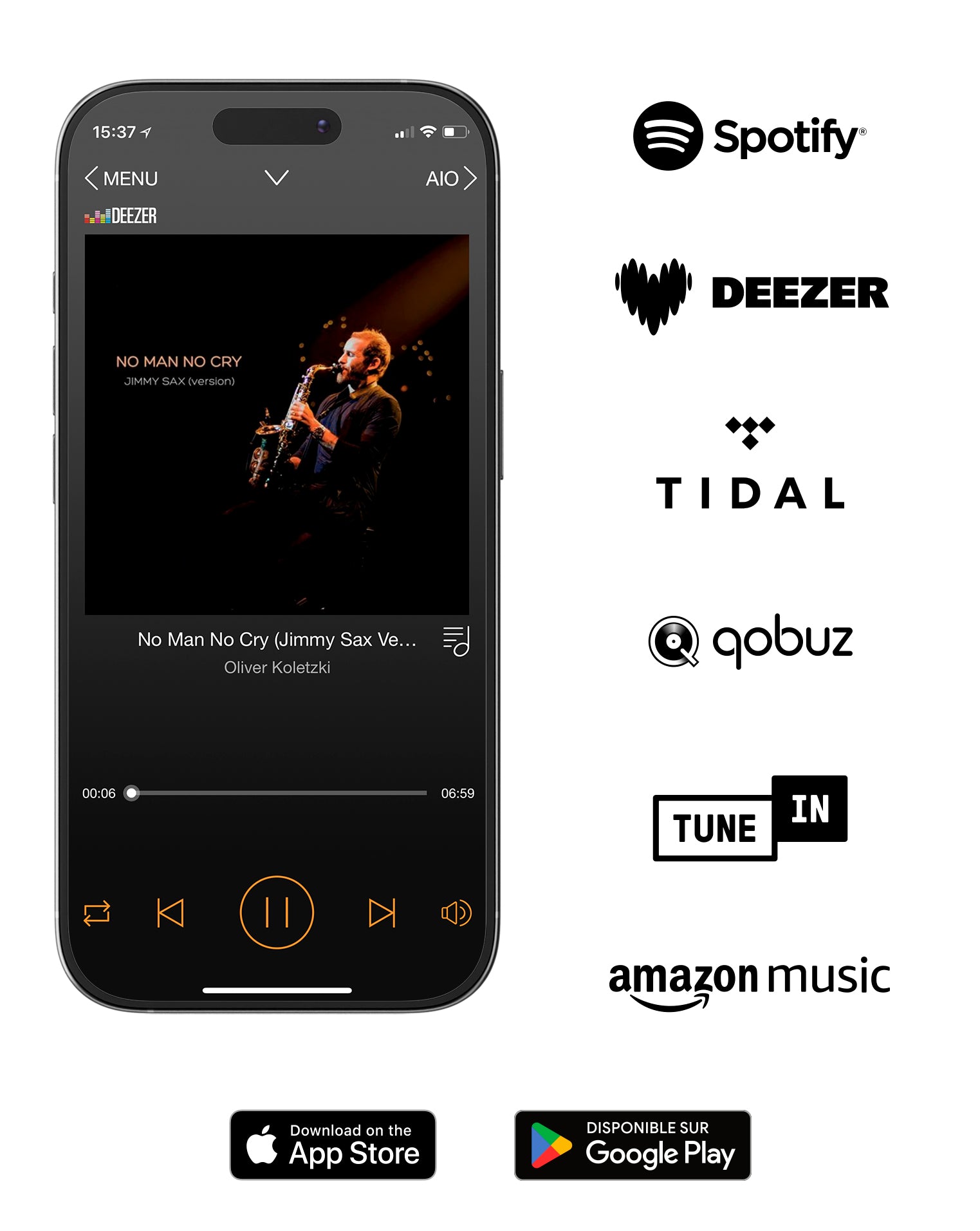 With a wide range of streaming services and online radio stations, access millions of high-resolution tracks and enjoy your music without restrictions. Use popular platforms such as Deezer, Spotify, Qobuz, Tidal and Amazon Music.