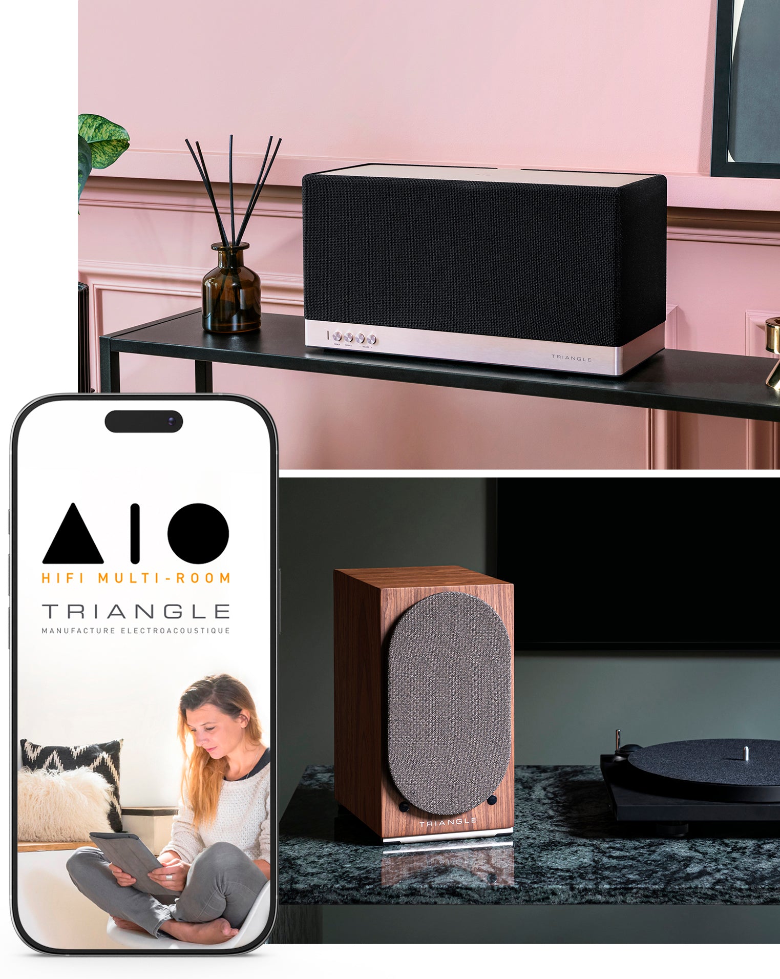 Bring incredible sound to your home with a state of art wireless loudspeaker designed and developed by with French expertise. The AIO series brings innovative audio technology combined with the traditional acoustic engineering history of Triangle. Bluetooth, Wifi, Internet radio, high-res streaming – discover hundreds of possibilities that AIO technology can offer.
